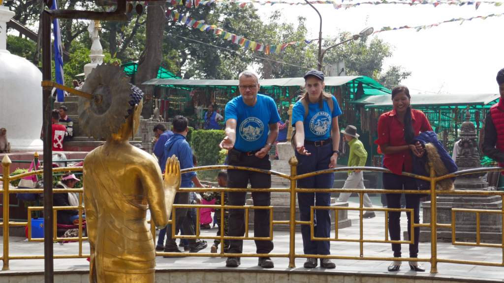 Am nächsten Morgen geht es nach Swayambhunath, ein Tempelkomplex auf einem Hügel im Westen von Kathmandu.